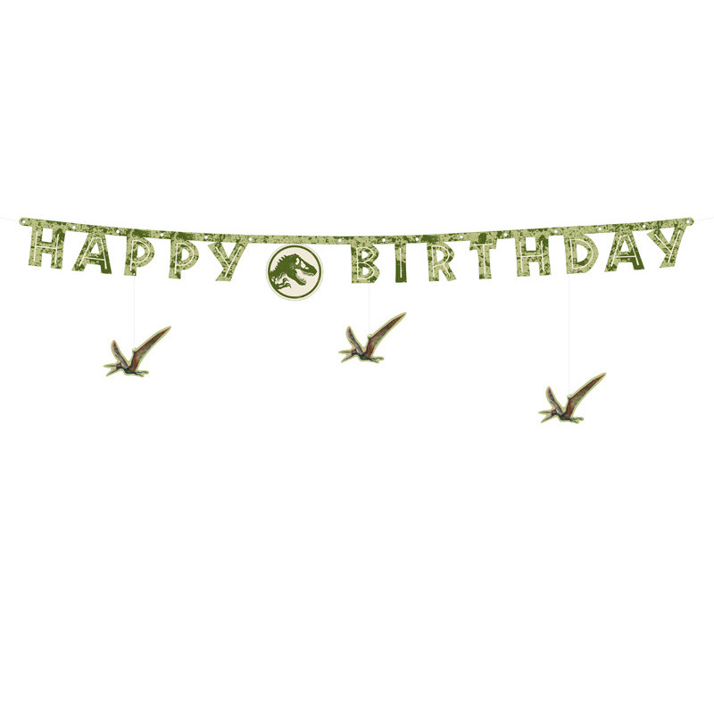 Dette store banner er fremstillet i solidt papir og måler hele 165 cm i længden og 45 cm i højden, hvilket skaber en markant dekoration. Med et mix af farver og ikoniske motiver fra Jurassic World universet, inklusiv en brølende T-Rex, bringer det øjeblikkeligt den forhistoriske verden til live. Den robuste kvalitet sikrer, at banneret holder formen og ser flot ud under hele fejringen.
